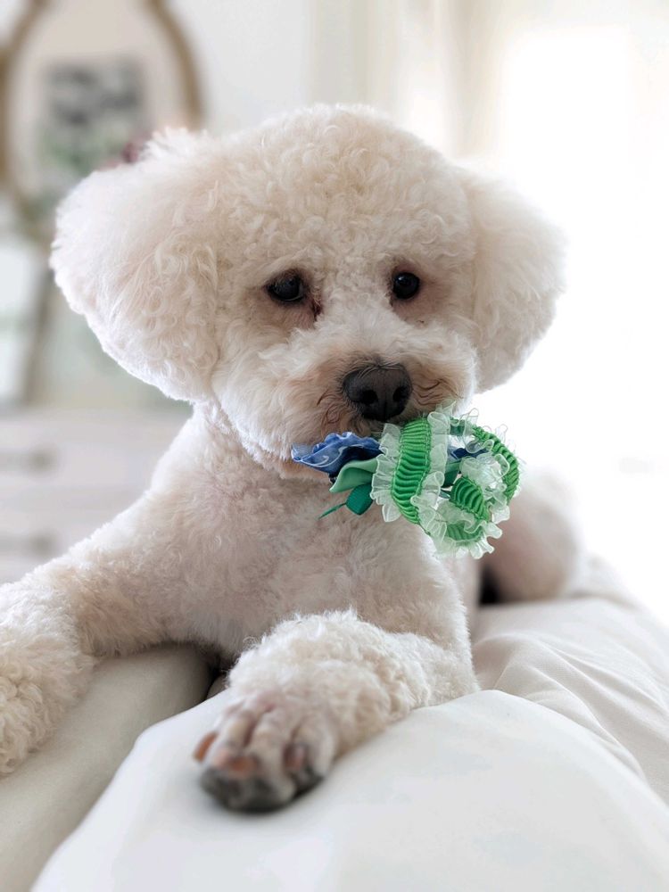 薔薇も綺麗😍Jesse君も遊びたい盛りですね 雨だと散歩に行けないから 元気余ってますね😄