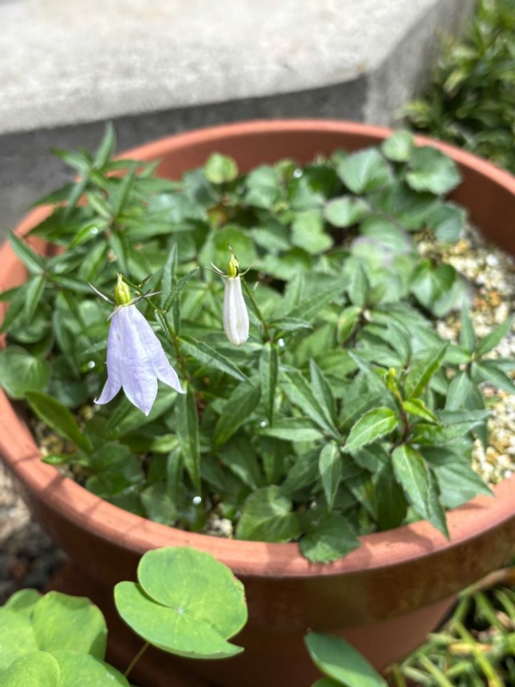 昨日、庭に出たら姫沙参(ヒメシャジン)が咲きました。しかし、今年は2花😅植え替えなきゃ。