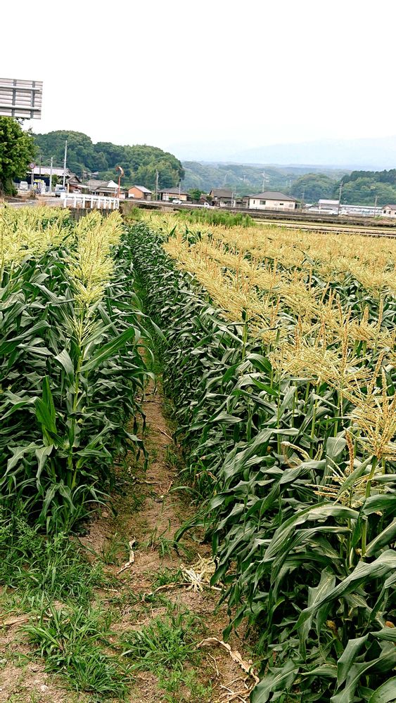 最近日本で開発されたとうもろこしみたいで、穂が少し赤みがかっているし、去年も栽培されてたので、大和ルージュかな⁉️と 思ってます😁🎶
