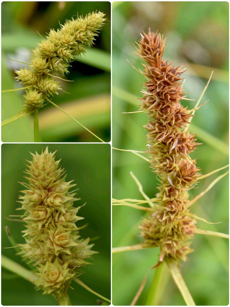本州、および伊豆諸島の八丈島の河川敷などの湿った草地に生える。草丈30~60cm。丸っこい小穂を密集した穂状に着け、その基部の苞の2~3枚が特によく発達する。小穂は雄雌性、多数の雌花と上部に少数の雄花をつけ。雌花の鱗片は卵形で鋭頭。東京では絶滅危惧Ⅱ類。