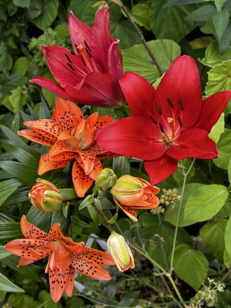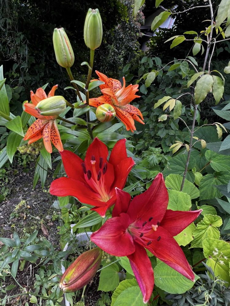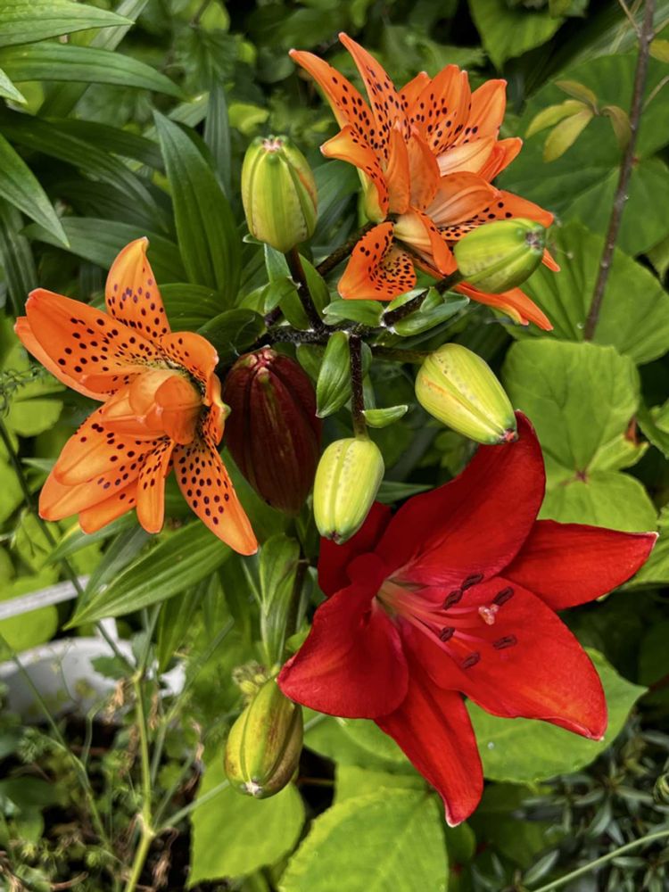 八重咲きの透かし百合、黒い粒のオレンジの花