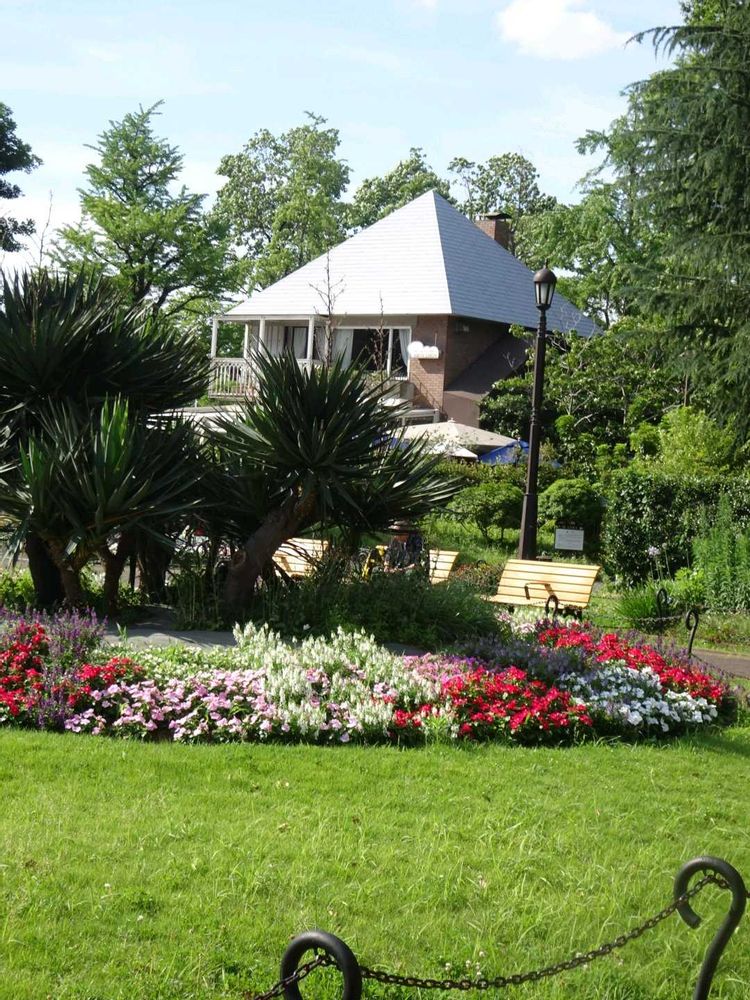 5枚目の花壇右側の白いモヤモヤはミストです。暑いので冷たいミストが出ていました✨