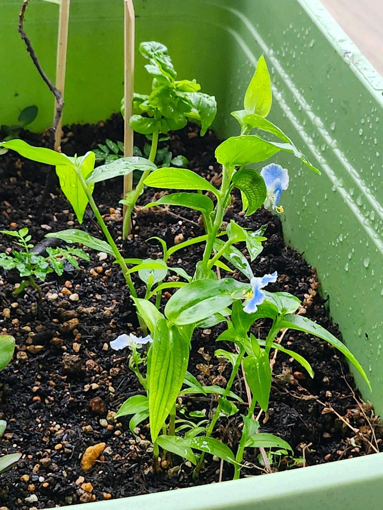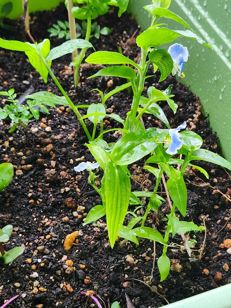 小さいけど、今朝3つも咲いてくれましたメガネツユクサ😆