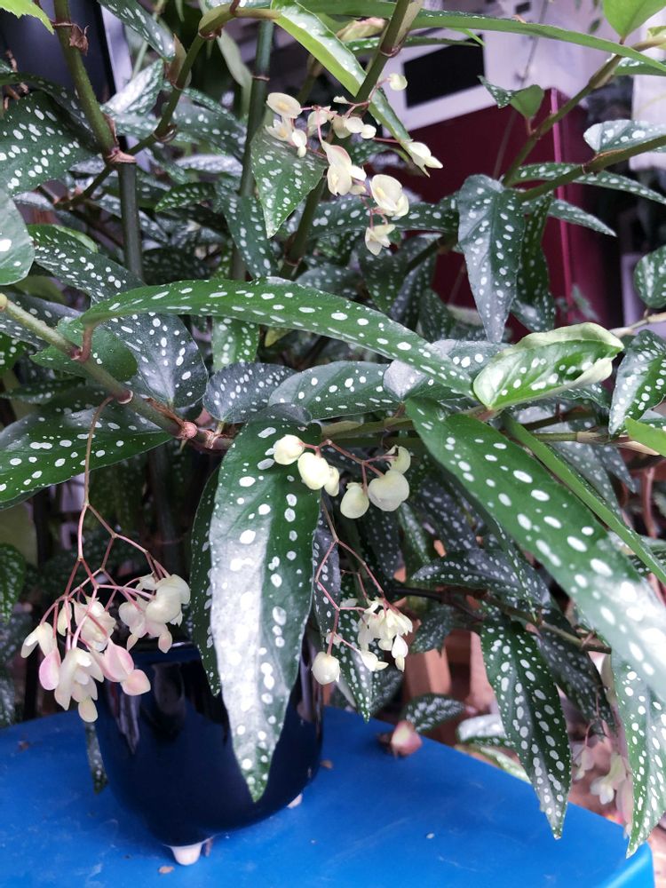 何年か前のベゴニア展で買ったアルボピクタ、今年はちゃんと液肥をやっているからか花が多い(^^)