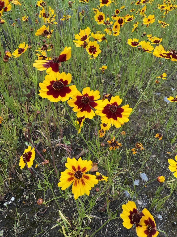 旧島村渡船場の利根川サイクリングロードをウォーキングしていると、足元にハルシャギクが群生していました。😊👍🎶📸
