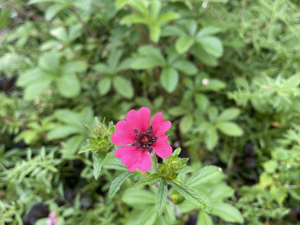 葉っぱがイチゴみたいだったので、イチゴのような花かな?と思ってたらこの子。いらっしゃーい。