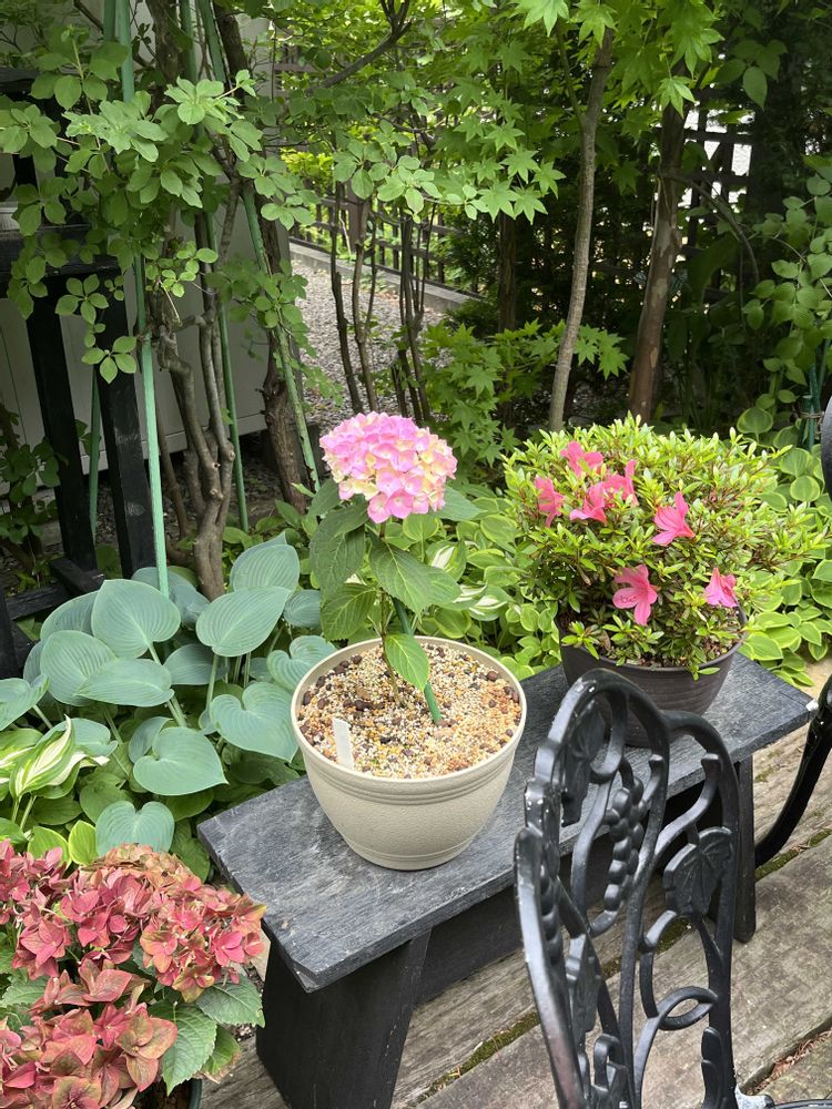 鉢植えだとあっちこっち動かせていいね👌アジサイの大きさに応じて鉢も大きくしないとね〜🥰