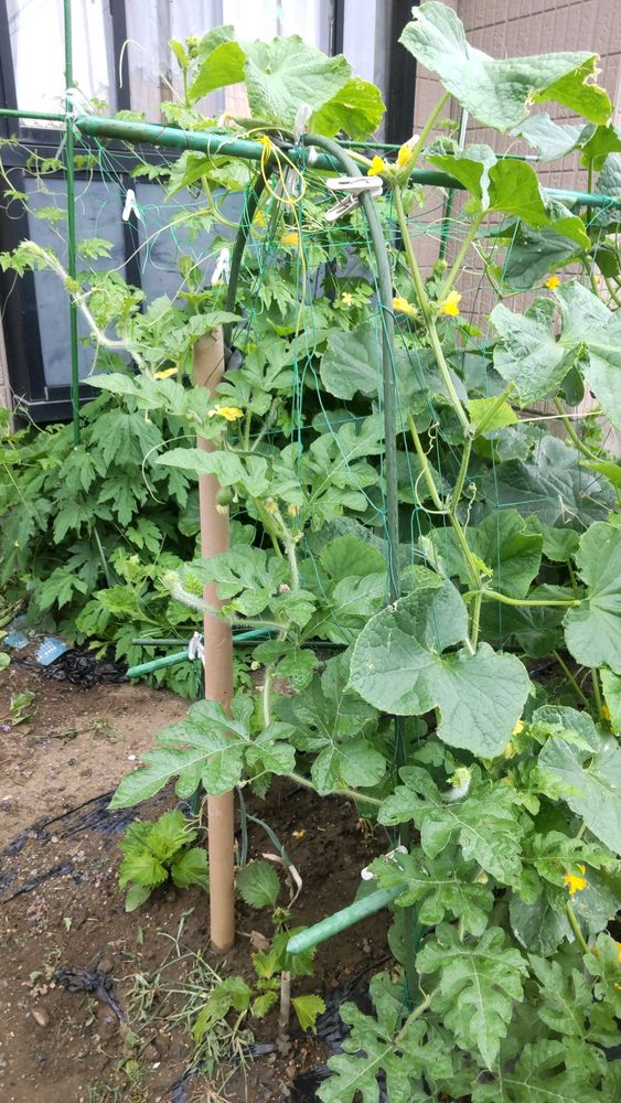 きゅうり🥒、かぼちゃ🎃ゴーヤ、スイカ🍉と食べられて、前回ネットを掛ける様にとの事なのでしばらく大きくなるまで様子見をして、今日外しました。