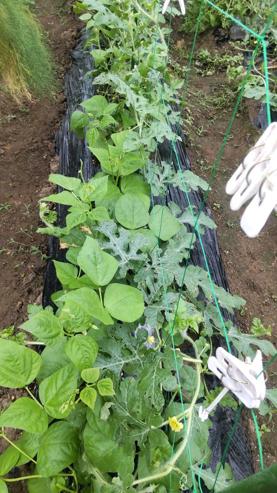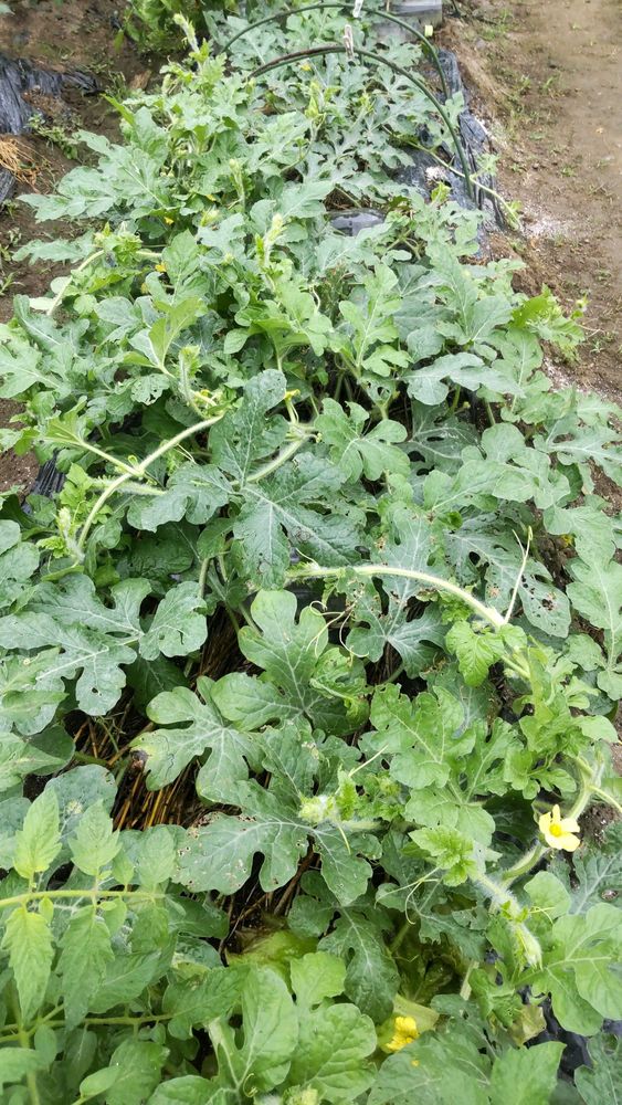 畑のあちこちにスイカ🍉はいます。種からの苗順調に育って自然交配もいくつかみられます。