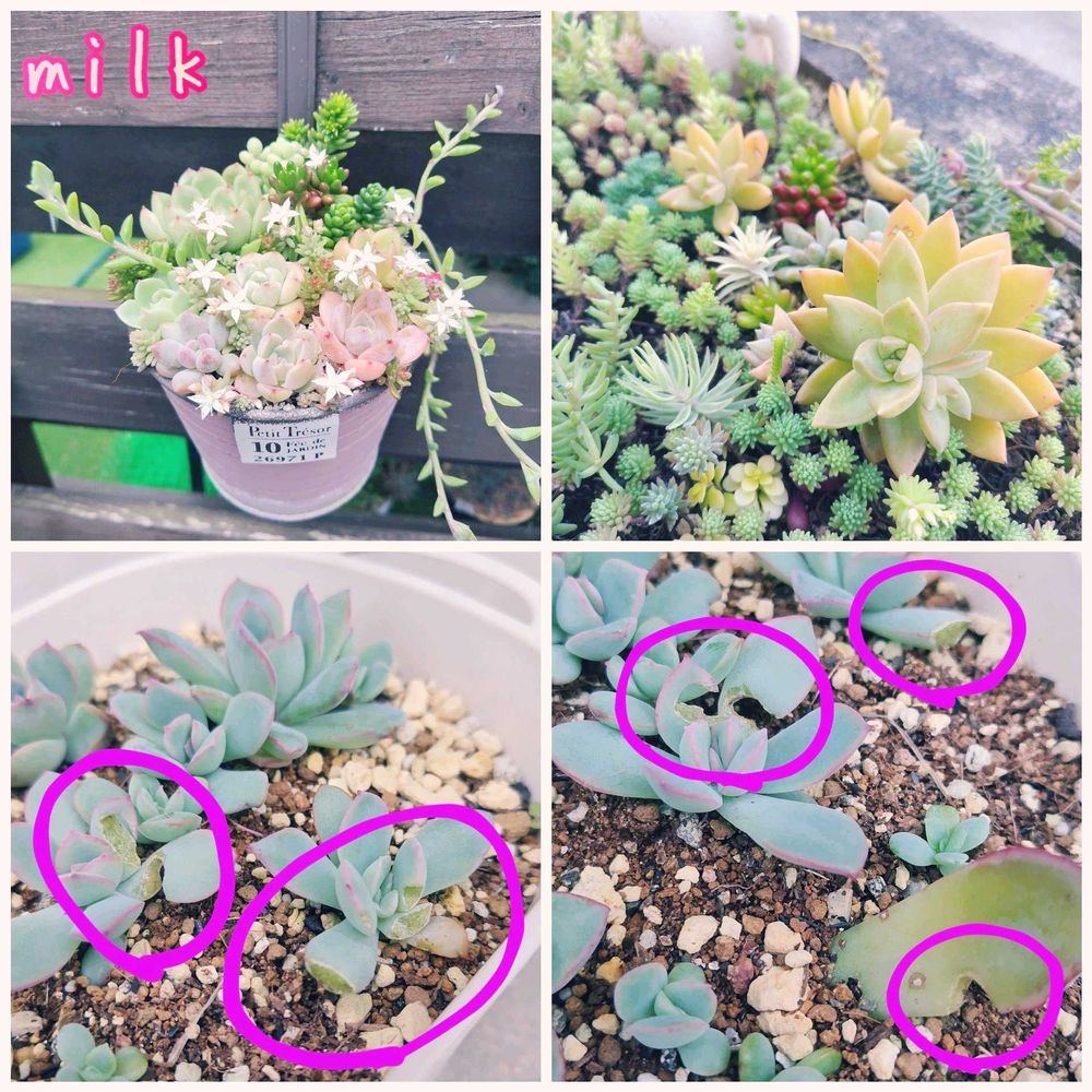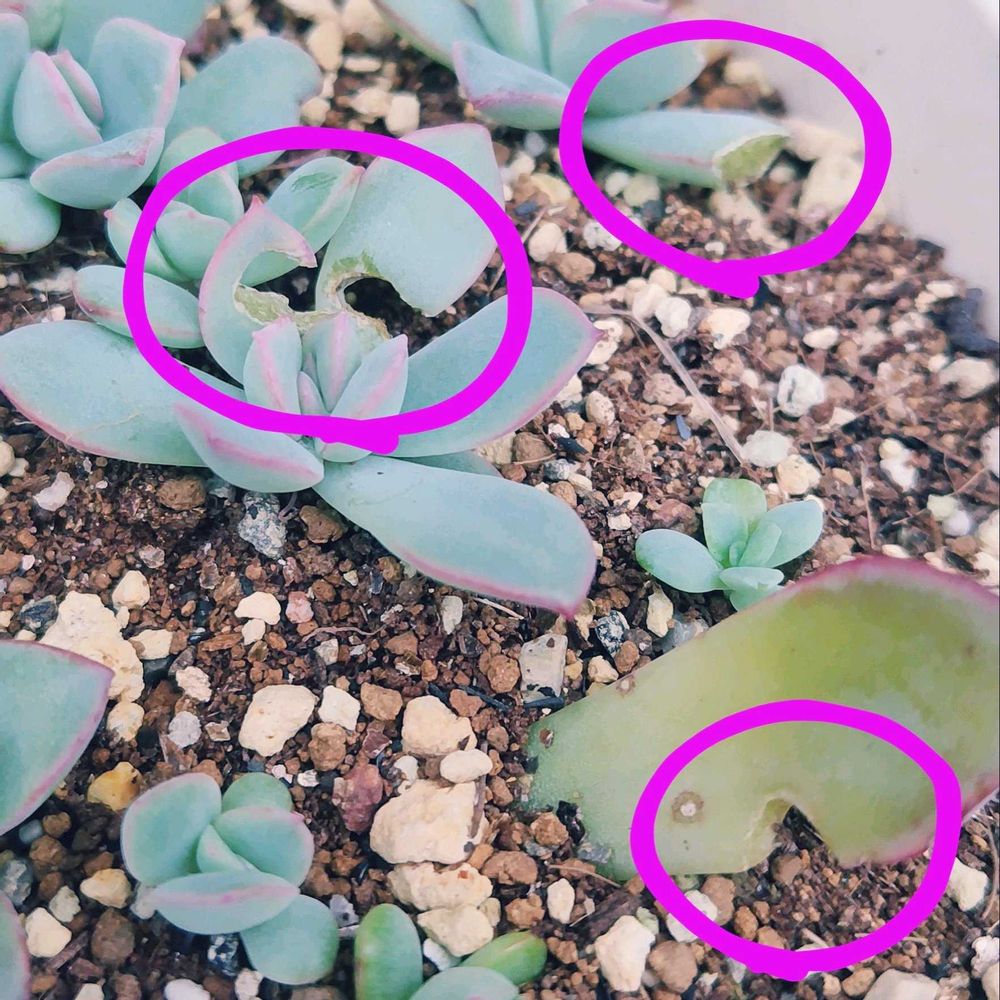土の中のオルトランの効果が既に切れてるのかもしれません(>ㅿ<;;)💦ナメクジの時はキラキラした筋が残ってたので、今回はナメクジ以外ですよね。ナメクジは室外機カバーの棚にまで来てたので、多肉を高い所に置いても来ちゃいますね😢梅雨の蒸れとかジュレとかも気にしないといけないのに、虫や鳥対策も大変だ〜(✘д✘๑;) ³₃可愛い多肉ちゃんたちのために頑張る(๑•̀ㅂ•́)و✧