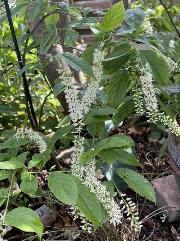穂状の花序に小さな白花をブラシ状に咲かせる。