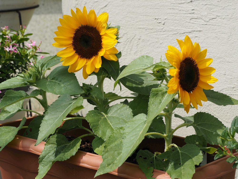 ザひまわり!!って感じのお花で、鉢で可愛く育てられる背丈のミニひまわり🌻
