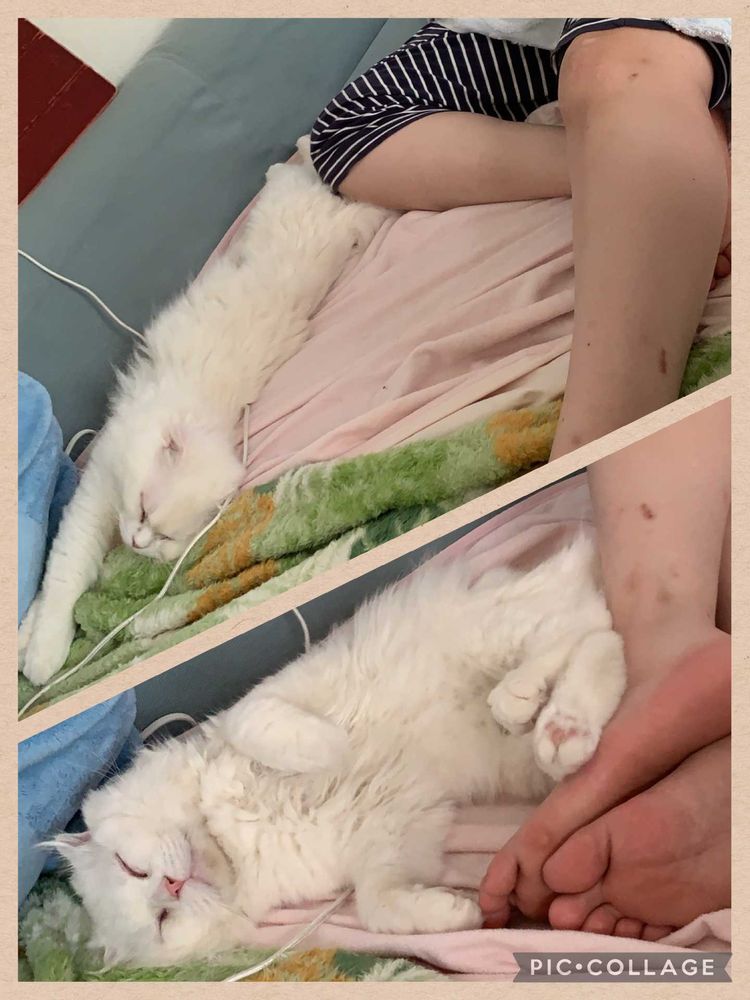だいぶ暑いのにくっついて寝るのが好きみたい😁