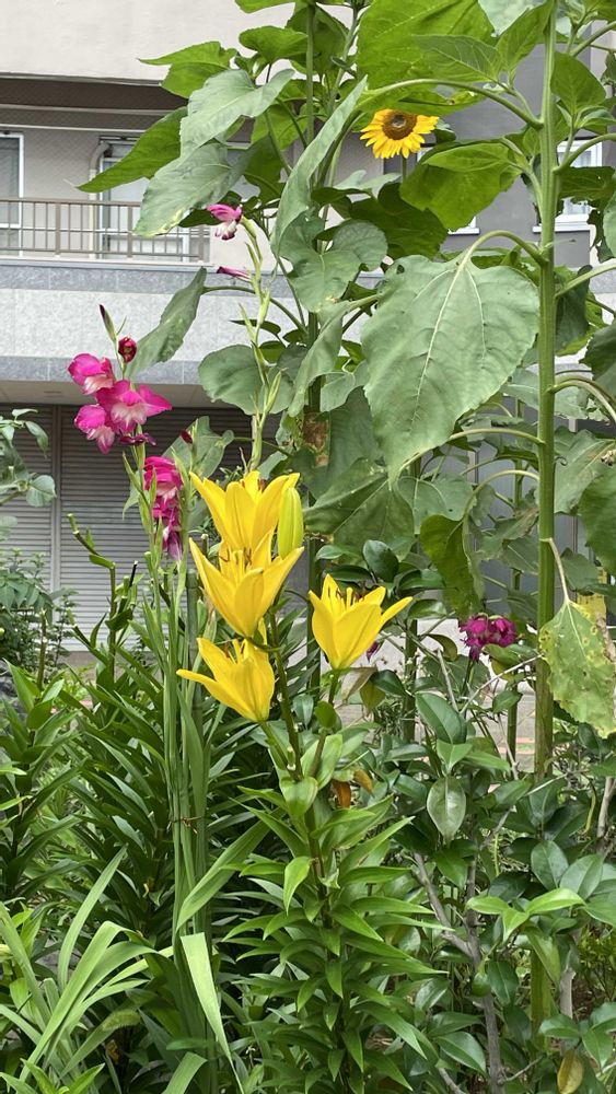 ヒマワリ,スカシユリ,マンションの花壇の投稿画像