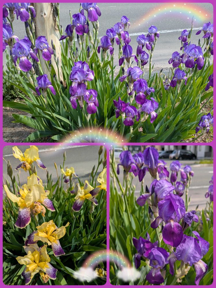 道路脇の植え込みに綺麗なジャーマン発見(๑ᵔᗜᵔ)σミッケ💜💛