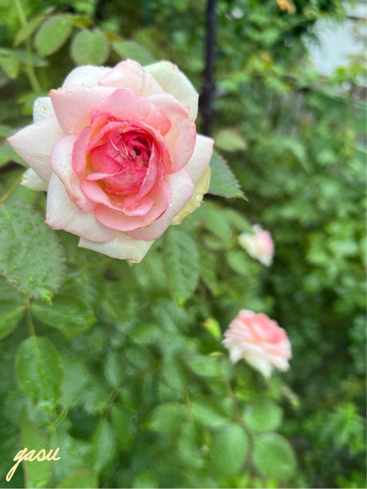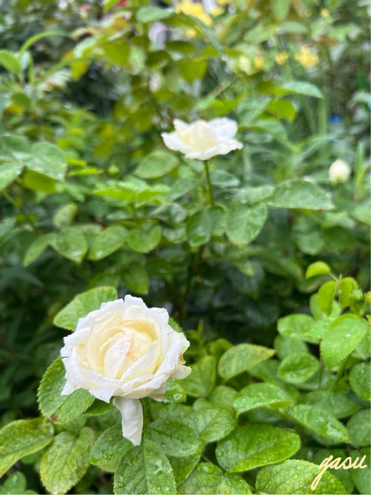 ②ベルロマンティカ💛 2番花がさいせいきを迎えようとしてるのにこの大雨💧 もう少し辛抱してほしいなぁ😅 隣のパレードも花は項垂れ枝は折れまくり😂