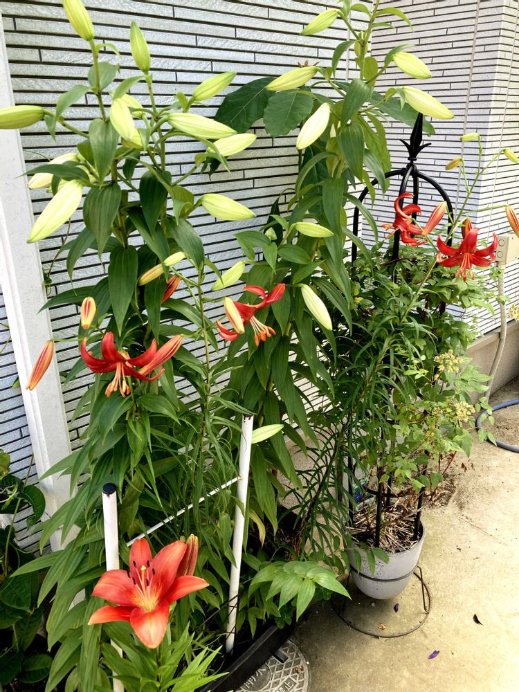 去年180㎝にもなったシャンデリアリリーさん、今年はカサブランカの勢力に負けたか?目線より下の高さです😅💦