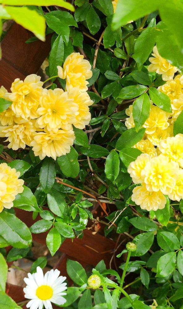 2年目のモッコウバラは、花はまばらですが、可愛い淡い黄色💛でいい感じですね。