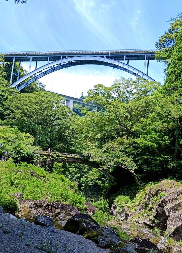 低い橋から「神橋」「高千穂大橋」「神都高千穂大橋」珍しい3本のアーチ橋