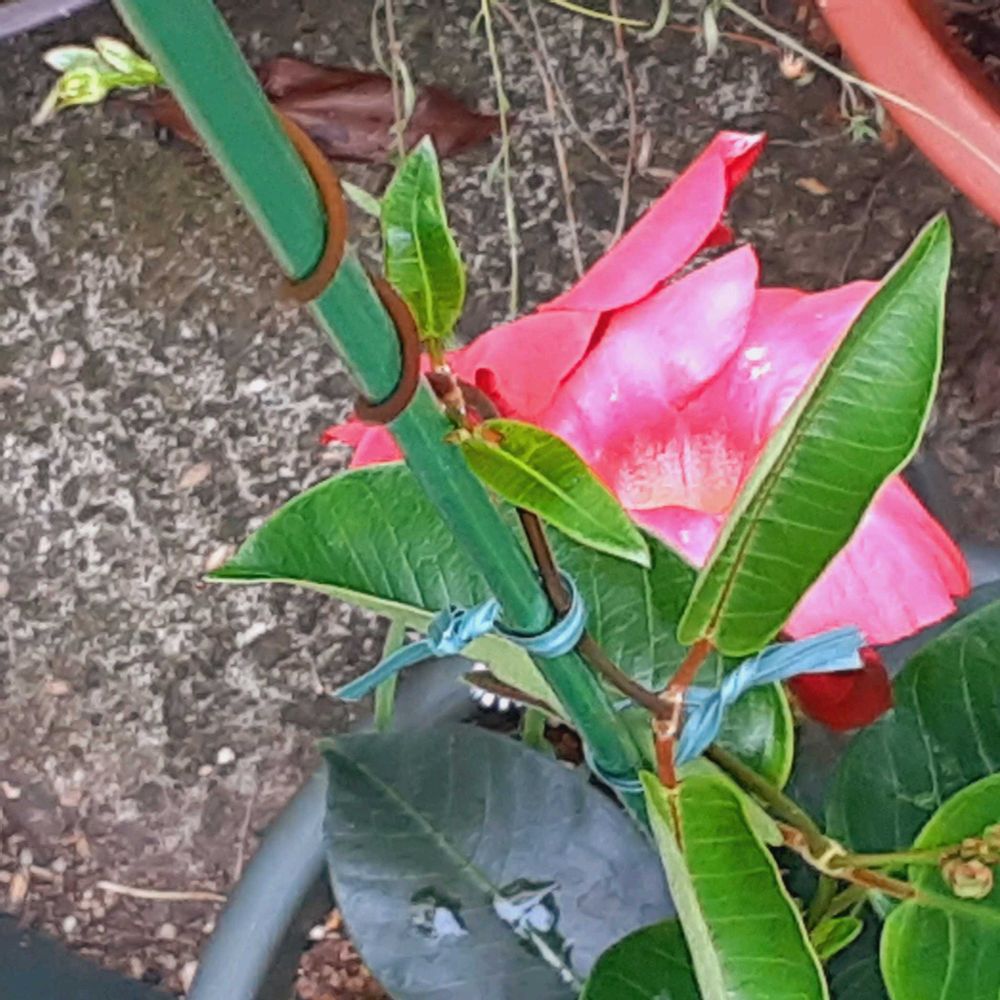 3⃣サマーラッシュ、赤花のほうだけツルが伸びてきたので支柱をたてましたꕤ˖*