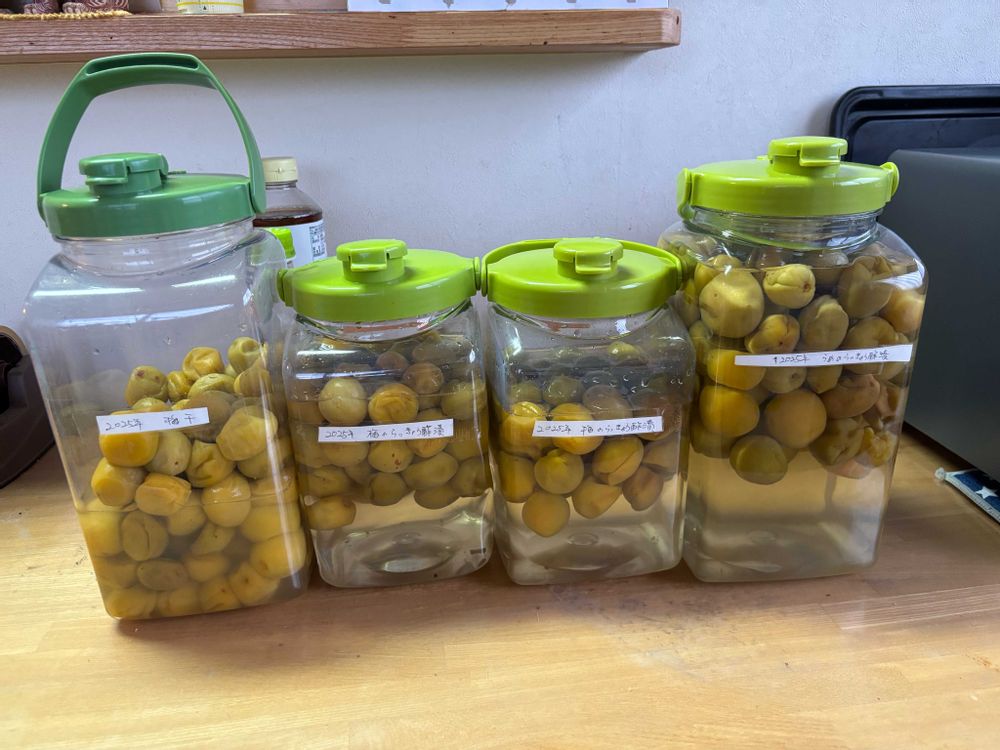 今年は梅が青いうちにポトポト落ちちゃったので(少なくても300〜400個は落ちました)どうかなと思いましたが収穫してみたら13キロありました😱消費しきれないので親戚の叔母さんに6キロほどあげて、我が家の分7キロ頑張りました〜💪💪