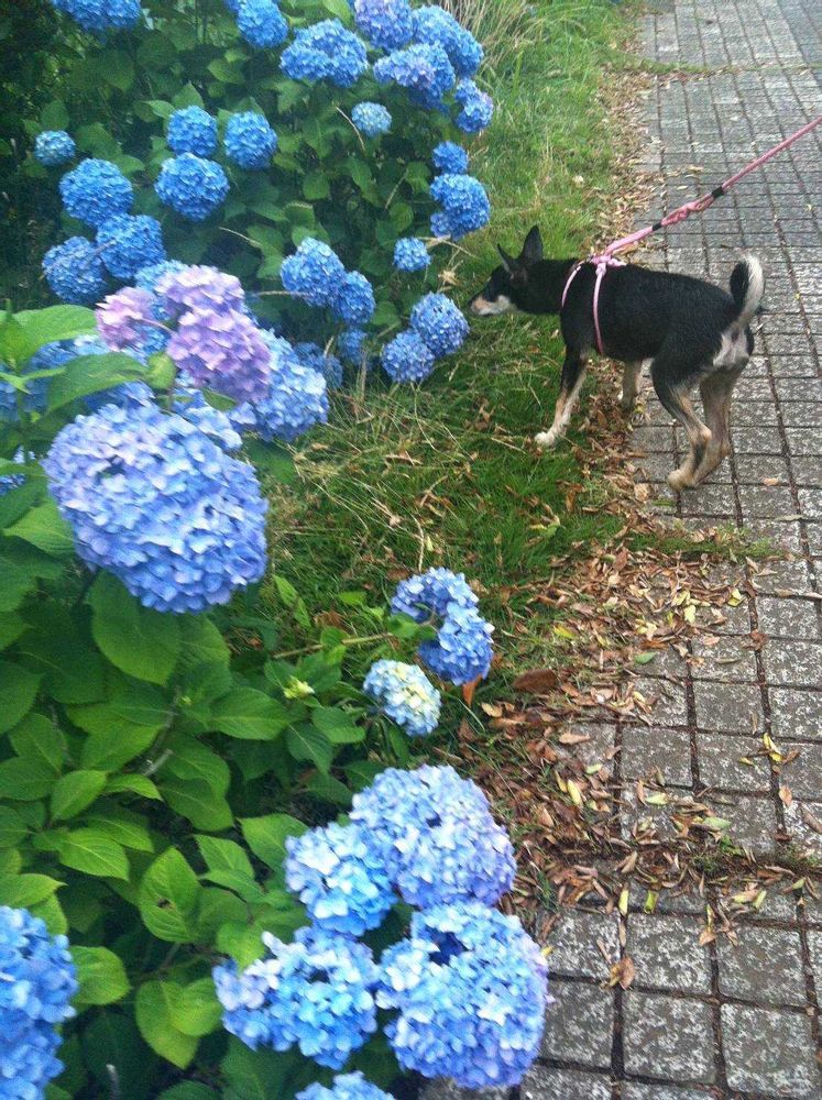 紫陽花の前でこっち向いて欲しいけど、今年もダメだった😆来年また挑戦します🩵💙💜🐕🐕🦺