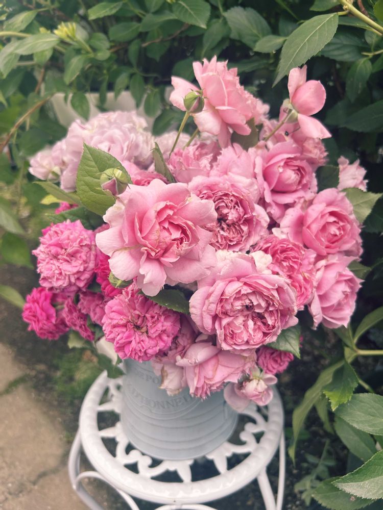 午後から雨予報だったので早朝よりまだ咲いてるバラを切ってちょっとだけ遊んでみました