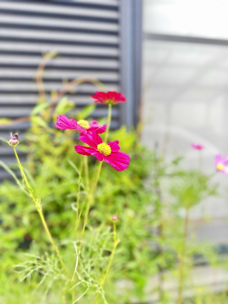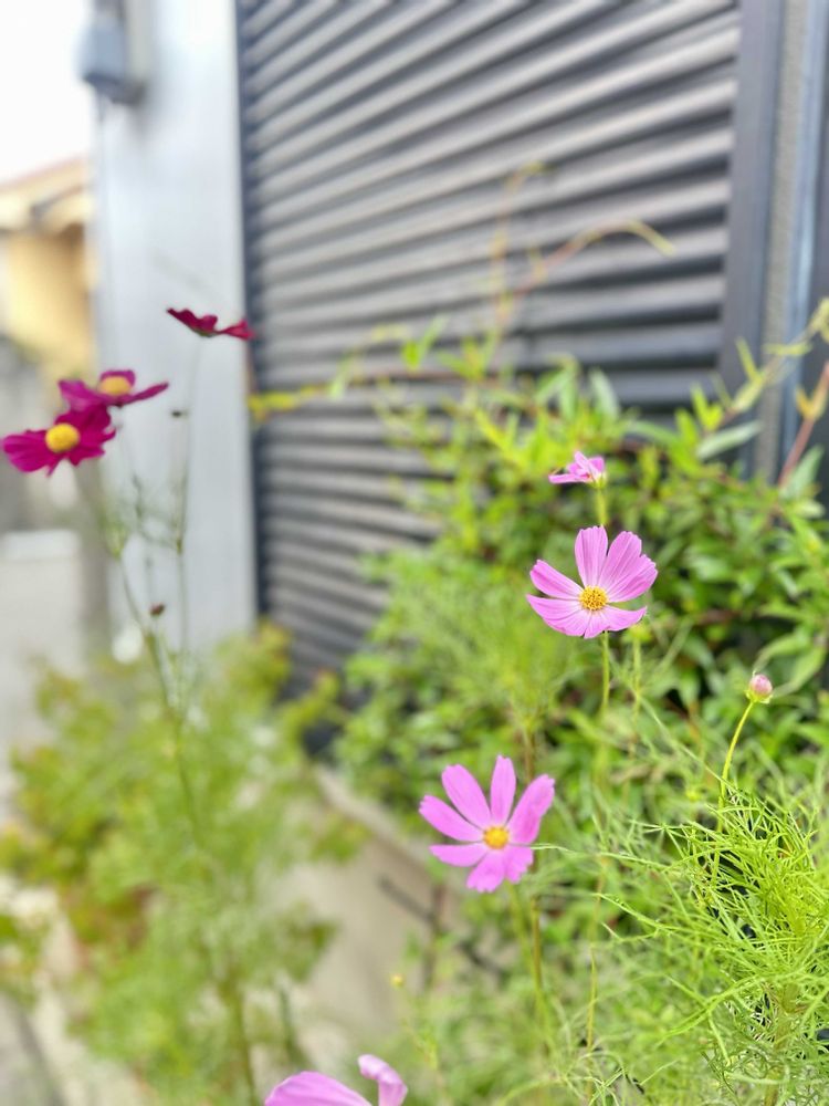 以前🩷色の花が咲きましたが、赤紫色の秋桜の花も咲きました。