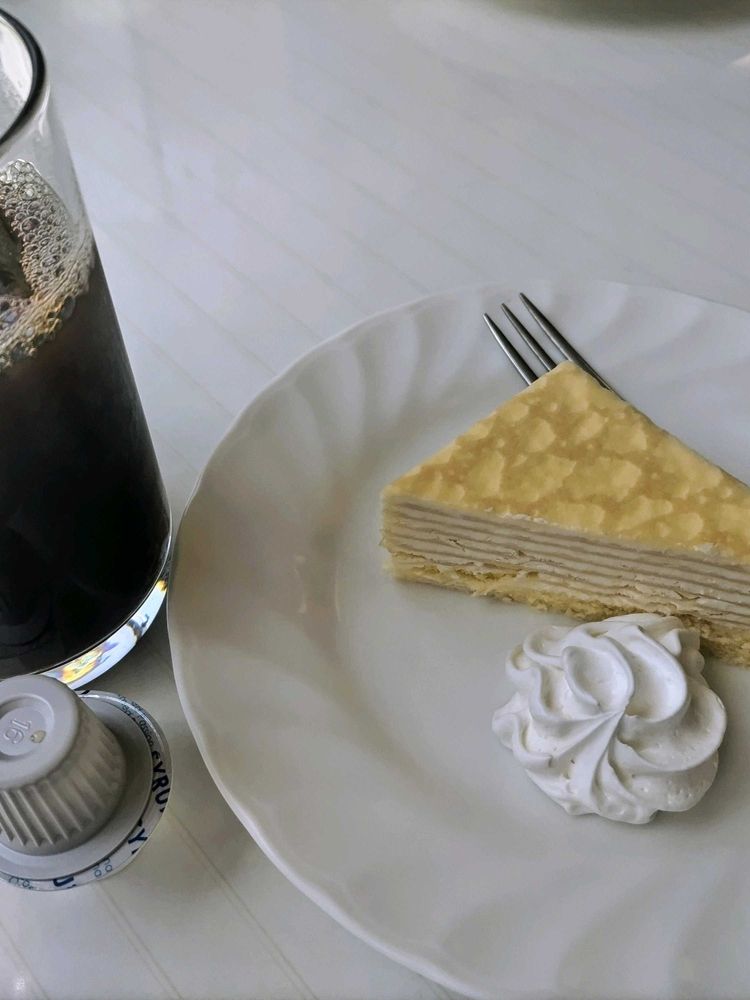 ⑤デザートのミルクレープとアイスコーヒー𖠚ᐝ