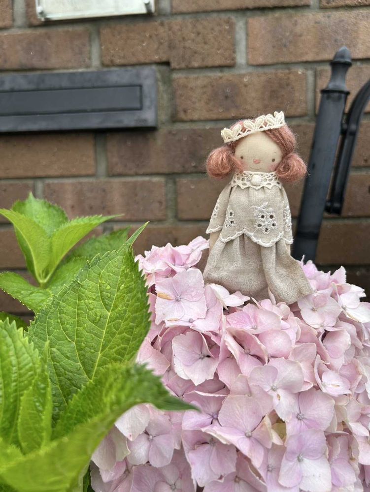 紫陽花の花…お友達の庭に咲いていて…手作りのお人形と一緒にパチりと写真を撮りました。💓