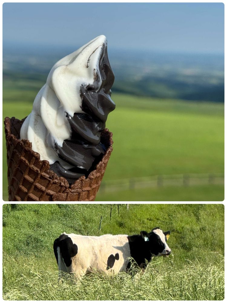 ソフトクリーム🍦シロ🤍とクロ🖤とウシ🐄の3種類 あったの〜🤣