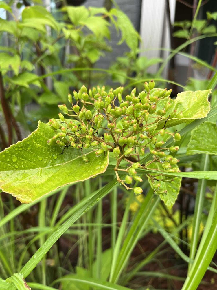 ハクサンボク 春の白い花が落ちて緑色の実が元気です。
