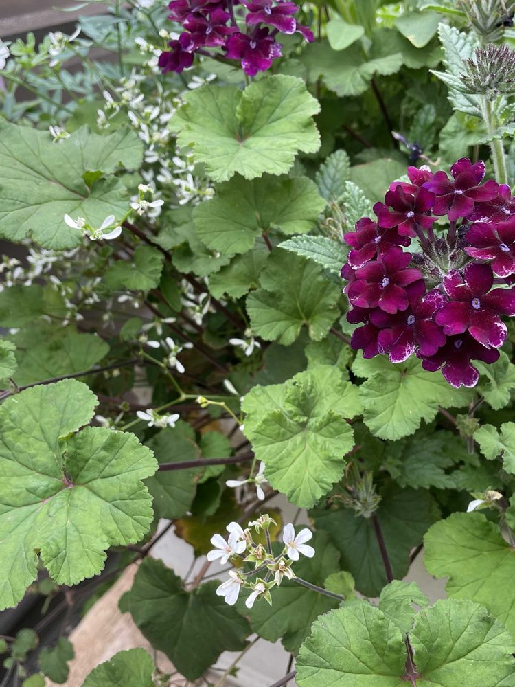 ペラルゴニウムは小さな白い小花ですが、ピョーンと飛び出してます