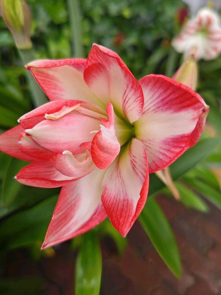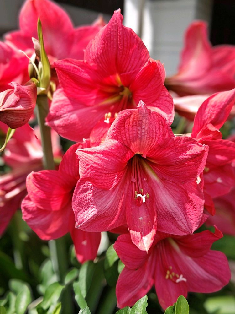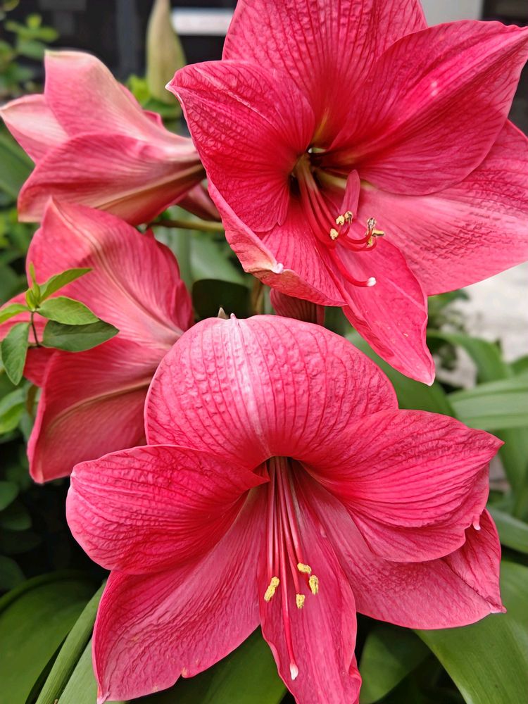今日のお花🏷️の、アマリリス。毎年、見事な大輪の花を咲かせるご近所のマンション入り口。今年も綺麗に咲いていました。