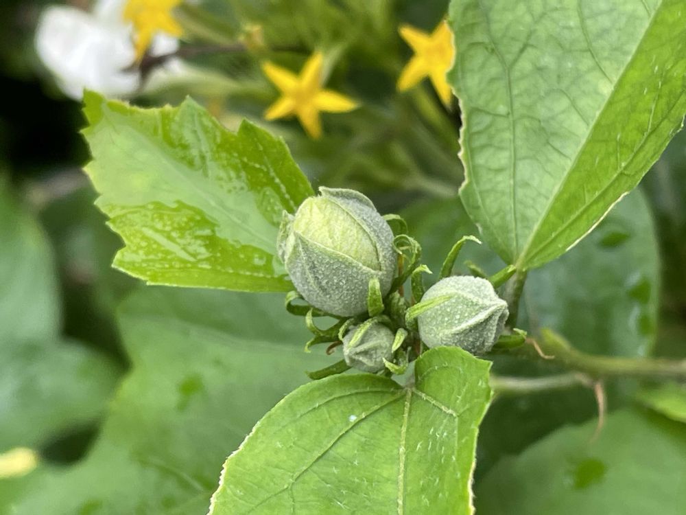 ムクゲもベランダにあるのね背景のコンロンカ💛😊