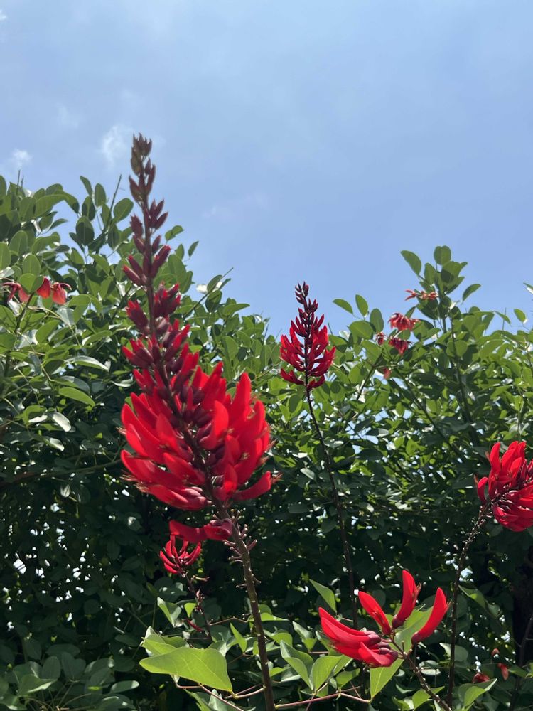 珍しいお花の数々、鮮やかな花色が真っ青な空に映え、南国情緒がたっぷりと味わえますね🎶