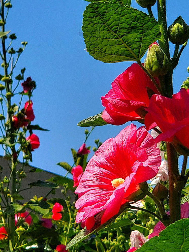タチアオイの写真は、先日梅雨前線が無くなった時に写した1枚です🤗ヤッパリ青空バックは良いですよね!