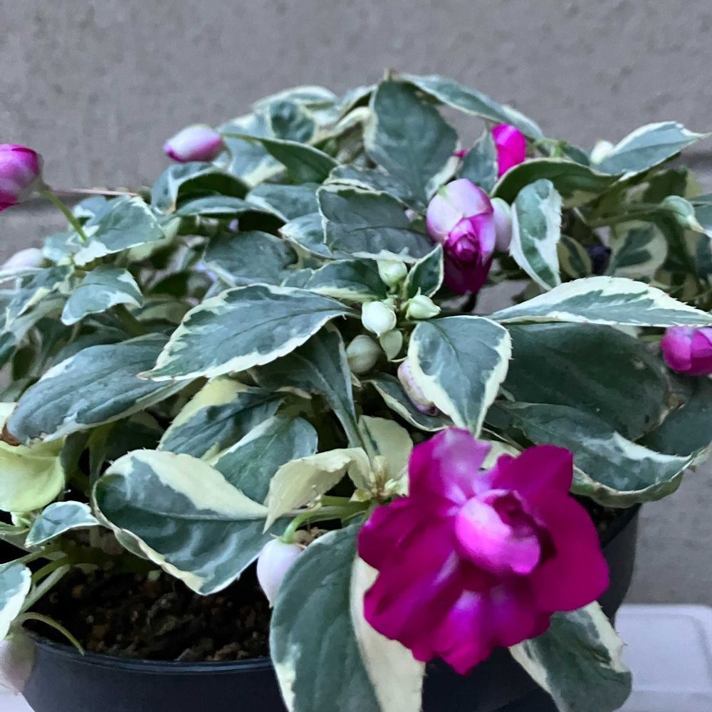 テラス,八重咲きインパチェンス,八重のインパチェンス 斑入りの投稿画像