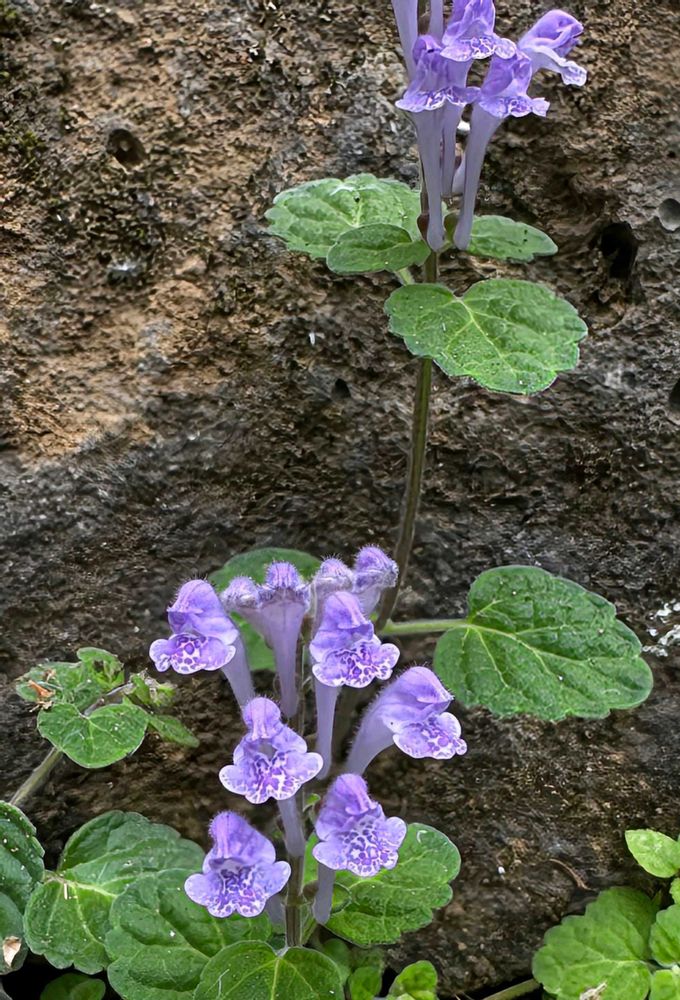 コバノタツナミの花は日本固有変種で本州の福島県以西、四国九州迄自生しています、高尾山では法面の岩場や斜面に多く咲きます。