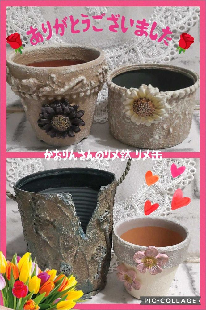 3枚目は、昨日届いたかおりんさんのリメ鉢、リメ缶。とっても素敵💕