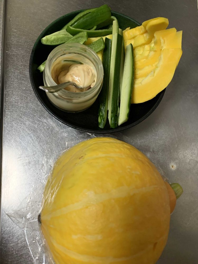 ③近所の坊やのアゲハ幼虫のために育ててます ④有機野菜の農家さんを紹介してもらい、コリンキーのスティックをやってみました ディップは味噌マヨネーズ ⑤同じ農家さんのモロヘイヤ 朝どれです