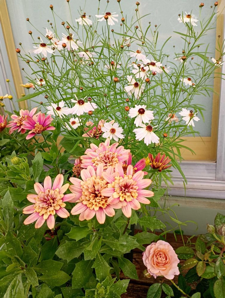 ドレープさんちょっと雨で傷んでしまいましたが、素敵な色で咲いています🥰