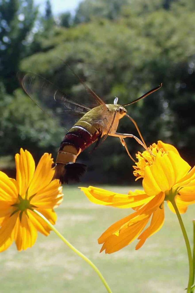 スズメガの仲間は沢山いて姿も色々ですが、これは羽が透明で透き通っているのでスカシバという名前ですね