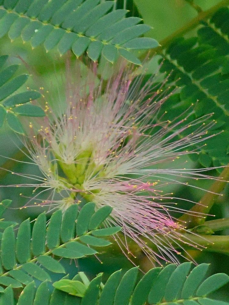 一昨年、優しい花友さんから譲って頂きましたネムノキさん🌿やっとお花を見せてくれました〜ヤッター😍🎶ピンク可愛い〰️🩷わが家にはヒネムさんもいます😊ヒネムさんは赤ですね🎶美しい〰️✨️my Garden🌼高い所からの撮影です📸‼️