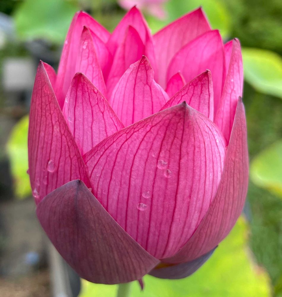 我が家のハス🪷閉じている時も桃の様で可愛いね😆