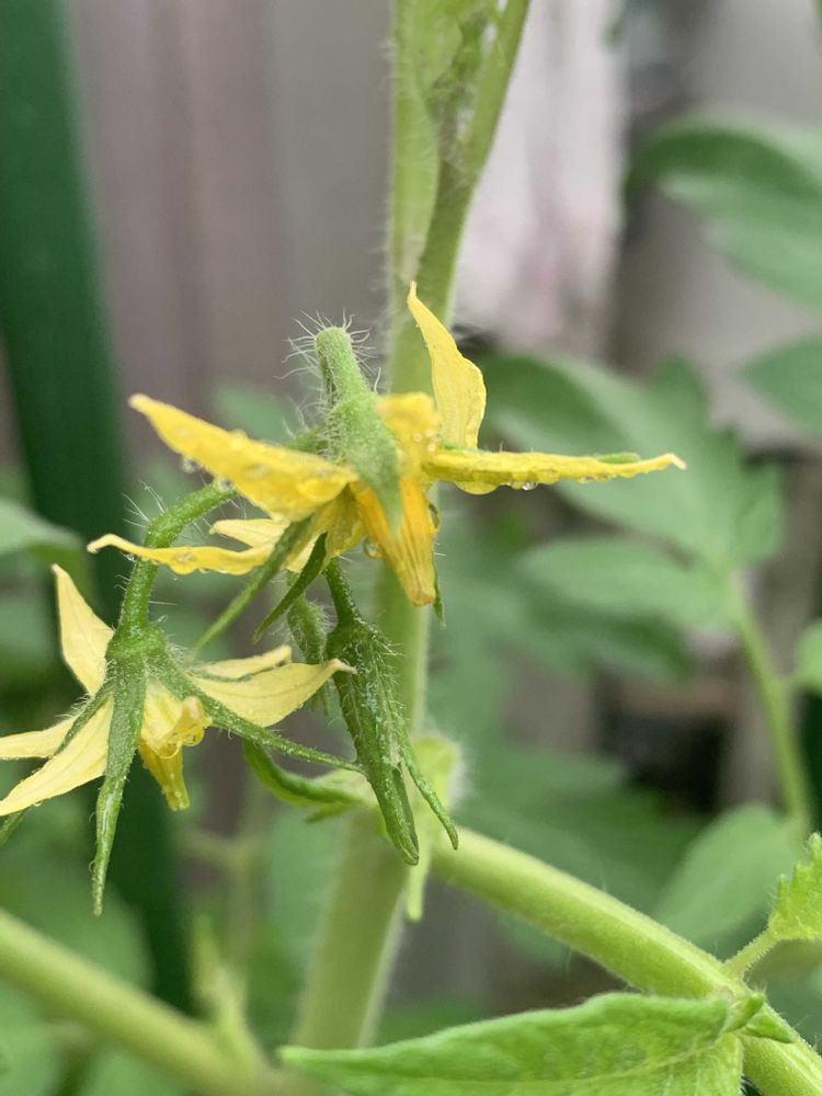 モスバーガーでもらった種から育てた大玉トマトの麗夏に第一花房が確認できました