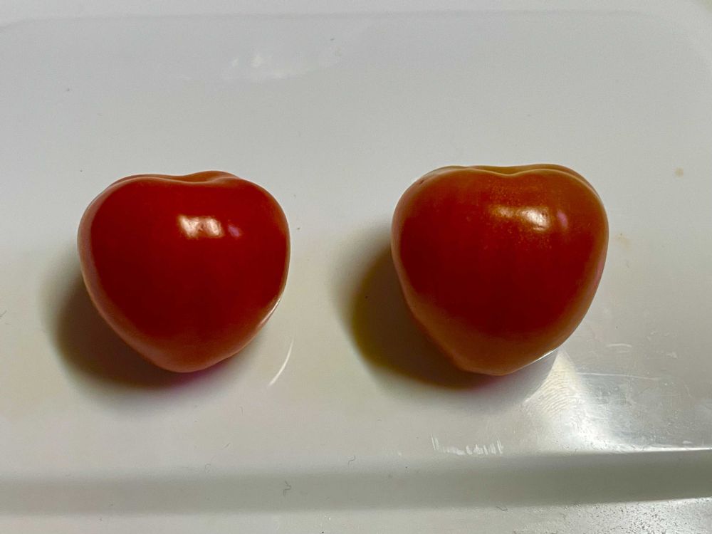 ハート形のミニトマト🍅の苗が売ってて遊び半分で植えてみたら一応ハート形のミニトマトができたわ🍅❤️