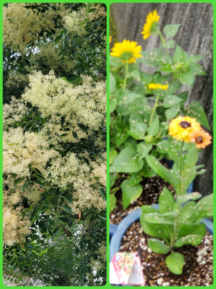 折角ひまわり🌻をと思いましたが、お隣のトネリコの花が降り積もっています😭