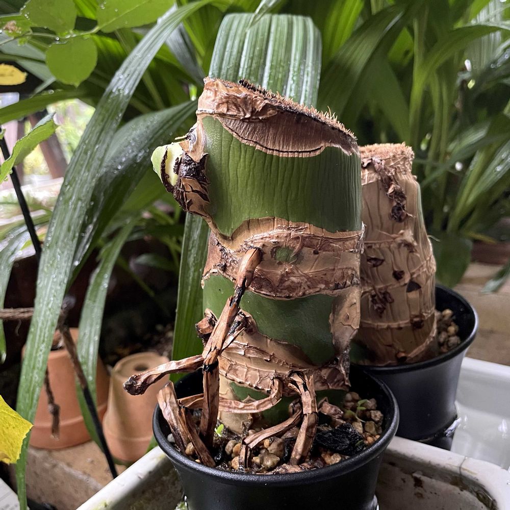 2025.8月に某サイトで購入した【アロカシア チャイ】の 突然変異?なんだろう 購入時、元々有った葉を(1枚目の葉)として、 下から新たな葉が出てきてる状態で到着しました(2枚目の葉) こちらに来て初めて出てきた葉に異変が。。 育て始めて出てきた初めての3枚目、4枚目 (途中から、斑1、斑2、、と続きます) どこまでこの謎の斑入葉が続くのか、 いや止まるのか……記録していきます