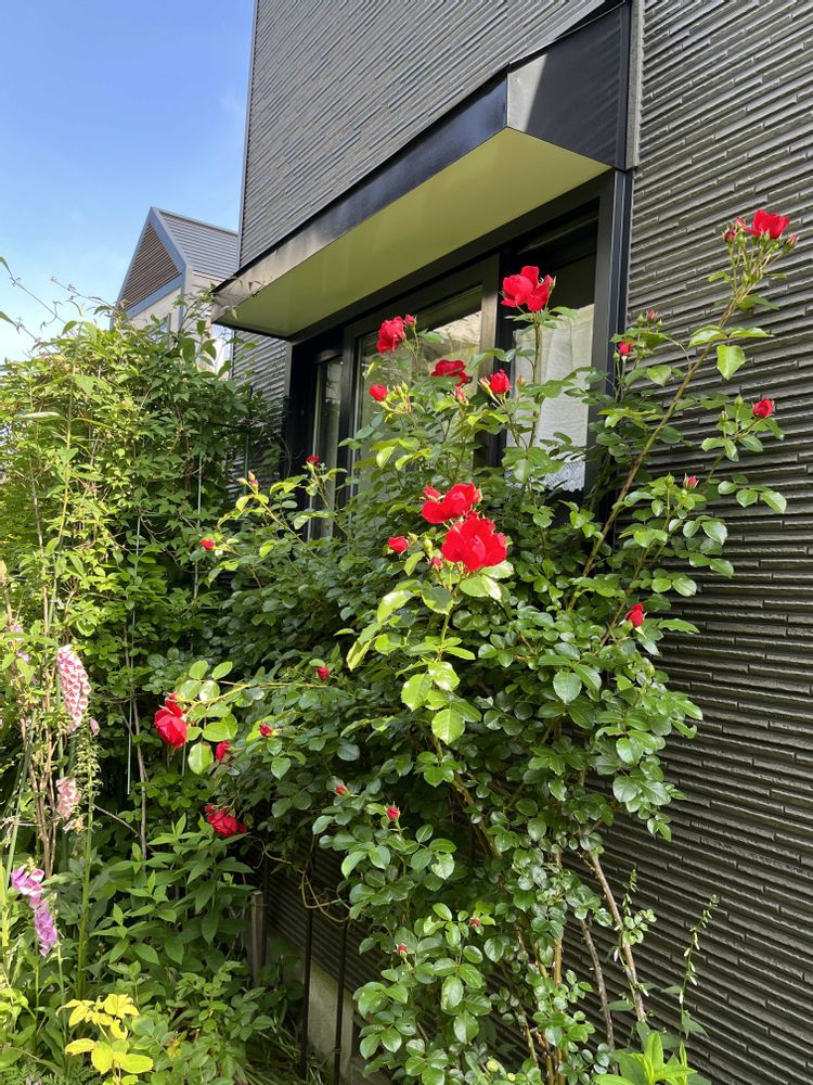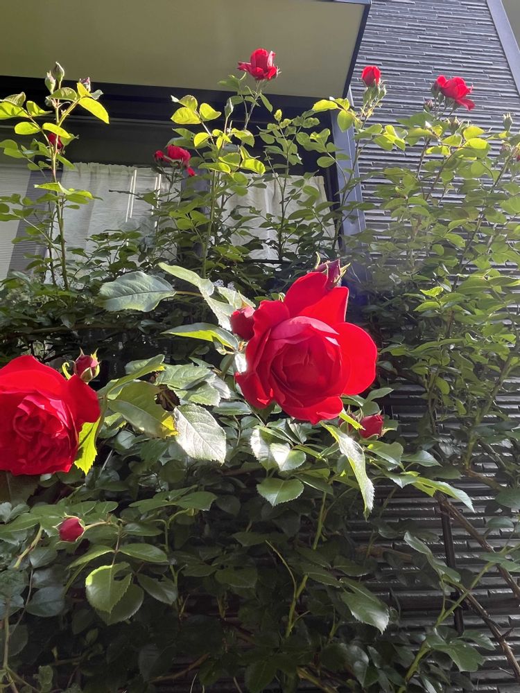 ツルバラのフロレンティーナが咲き揃いました 窓の下に植えたので部屋からも見て楽しんでます